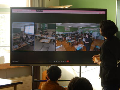 今日から3月に閉校を迎える浜佐呂間小学校との交流学習が始まりました。